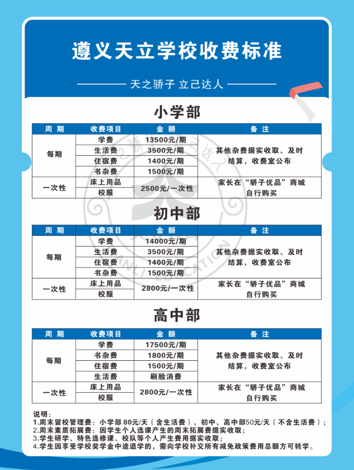 遵义天立学校收费标准
